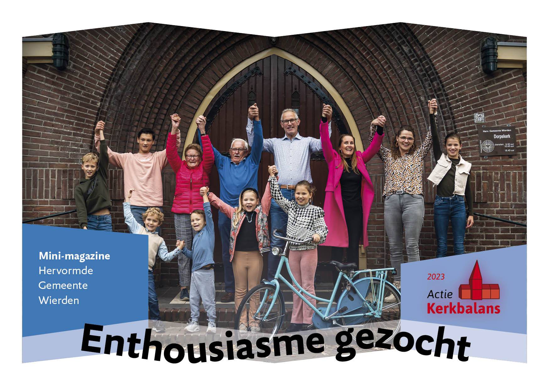 Eén keer per jaar houden de kerken een actie om geld bij elkaar te harken voor de lopende kosten: Actie Kerkbalans. De Hervormde Gemeente in Wierden brengt voor het negende jaar op rij een minimagazine uit. Idee is: zo min mogelijk praten over geld en vooral laten zien hoeveel waardevols er gebeurt in de kerk. Ook dit jaar maken wij weer dit mooie magazine met de verhalen van zeven enthousiaste kerkgangers.